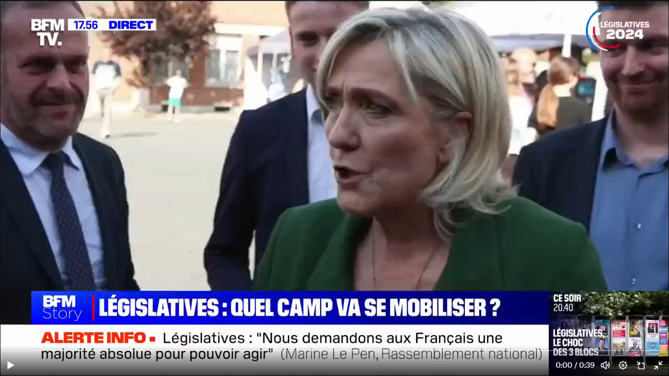 Le RN est donné à 33-35 %, devant la gauche à 25 % et les macronistes à 20 %. La gauche effraie, le RN est vu en rempart