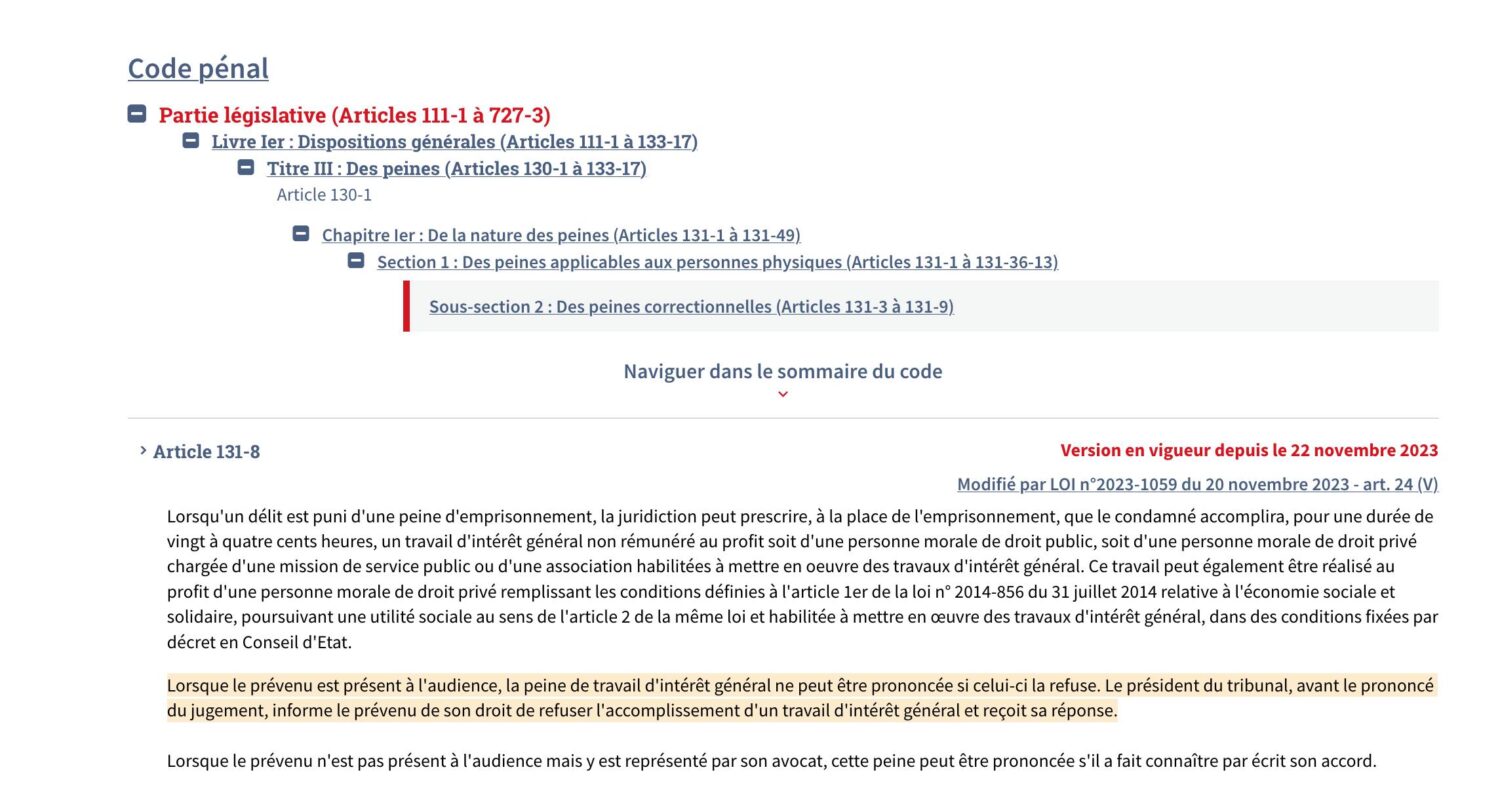 « En France, on est sûrement le seul pays au monde où un condamné peut refuser une peine. »