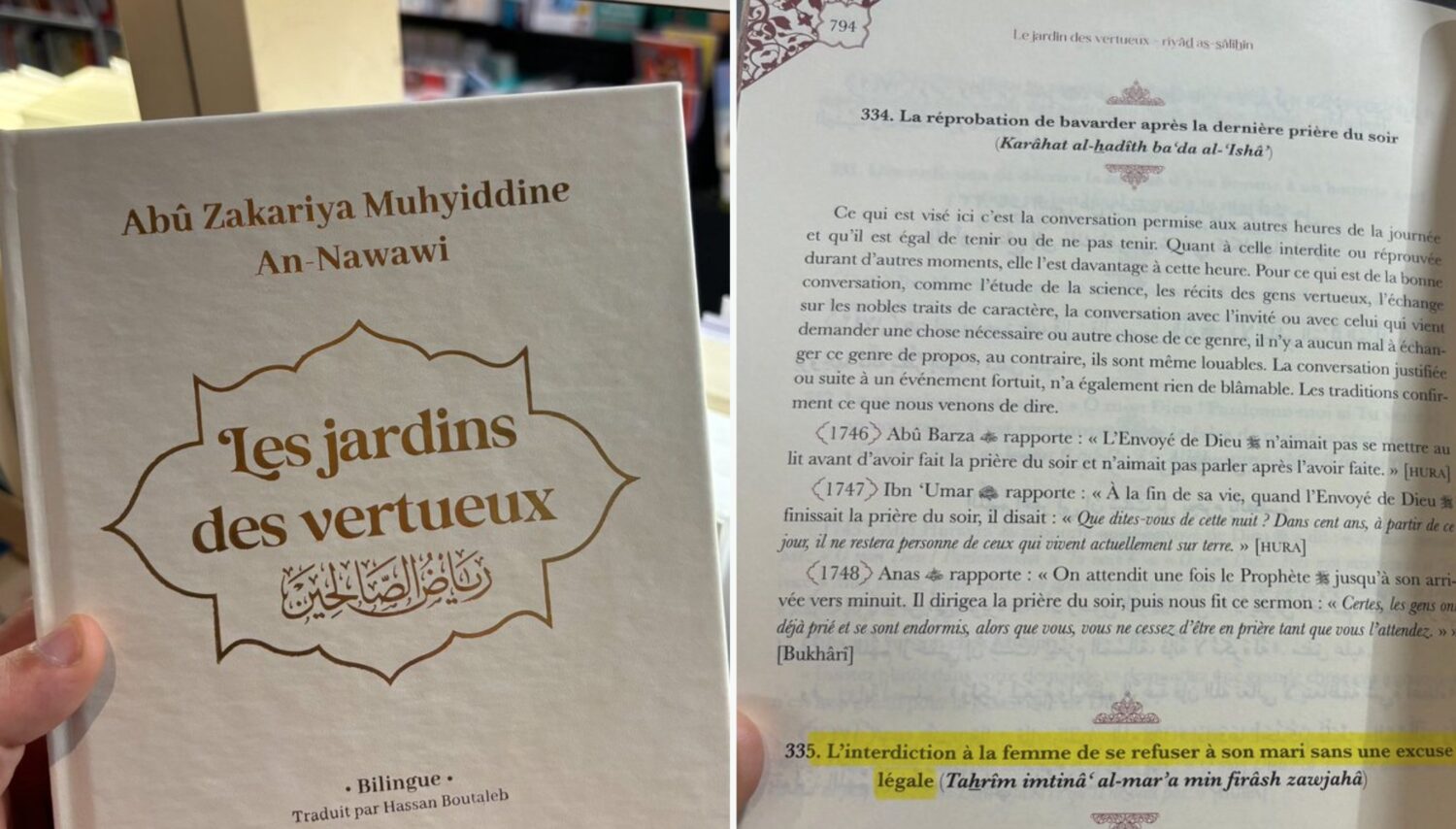 Toujours en vente, l'ouvrage indique qu'une femme a « l’interdiction » de se refuser à son mari « sans excuse légale ».