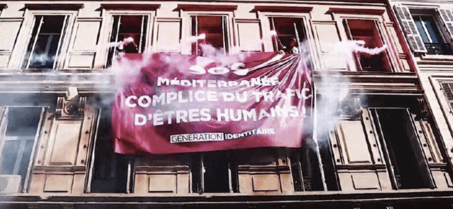 Les identitaires avaient déployé une banderole dénonçant SOS Méditerranée comme « complice du trafic d’êtres humains ».