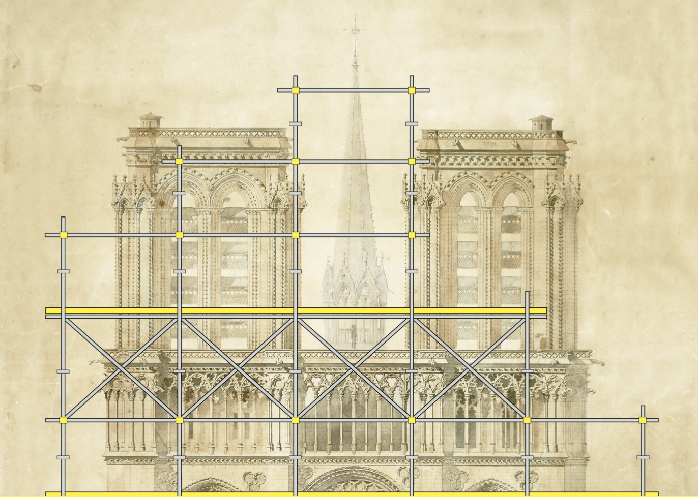 Sur Notre-Dame de Paris, la flèche prend forme. Ce qui enthousiasme Henri d'Anselme, joint par BV.
